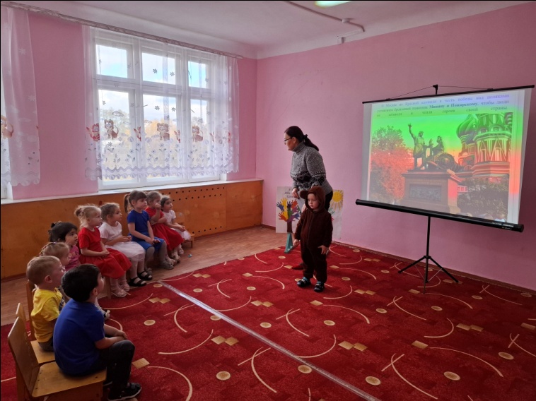 Осенний праздник «Тучка — Проказница»Опубликовано: 07-11-2024 19:00подготовил воспитатель: Свирина Н. Ю. На празднике осени в старшей разновозрастной группе "Радуга" действительно было много увлекательных событий! Дети проявили свои таланты: они пели, танцевали, рассказывали стихи, отгадывали загадки, что создало атмосферу радости и веселья. Когда появилась проказница тучка (воспитатель Рудова Е. Н.), она добавила немного интриги в праздник. Дети смело спели песенку с тучкой, прятались под зонтиками, создавая игривую атмосферу. Игра с лужами была особенно забавной — дети активно участвовали, прыгая и веселясь. В конце праздника осень (воспитатель Коломыцева И. В.) щедро угостила детей яблоками, что стало прекрасным завершением мероприятия. Такие праздники не только развлекают, но и учат детей работать в команде, развивать творческие навыки и ценить природу. ![]() ![]() ![]() ![]() ![]() ![]() ![]() День народного единства в старшей разновозрастной группе «Радуга»Опубликовано: 07-11-2024 19:00подготовил воспитатель: Коломыцева И.В.