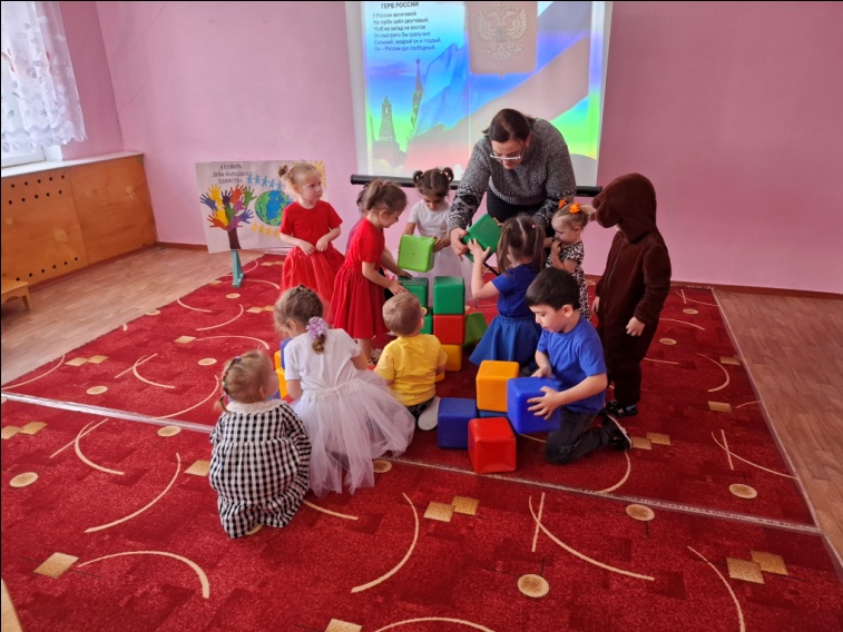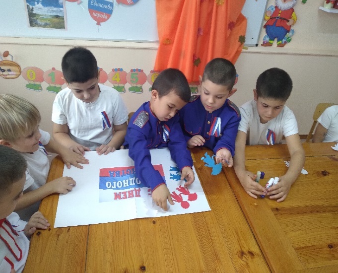 ![]() ![]() ![]() ![]() ![]() ![]() ![]() ![]() День народного единства в младшей группеОпубликовано: 07-11-2024 19:00подготовил воспитатель: Рудова Е.Н. В младшей группе «Звёздочка» прошёл тематический день, посвящённый Дню народного единства. Этот праздник является важным событием в нашей стране, он символизирует единство всех народов и их дружеские отношения. Я провела мероприятие, в ходе которого ребята узнали о значении праздника, его истории и важности взаимопонимания между различными культурами. Рассказа о Дне народного единстваначала, объяснив детям, почему этот день так важен для всех нас. Акцентировала внимание на том, что единство — это основа крепкой и дружной страны. Для лучшего понимания темы были продемонстрированы красочные иллюстрации, которые помогли детям визуализировать идеи дружбы и сотрудничества. Неожиданным поворотом в нашем мероприятии стало появление Медвежонка. Он пришёл в группу с печальной историей: ураган разрушил его берлогу, и теперь ему нужно было новое укрытие для его семьи. Ребята не остались равнодушными к беде Медвежонка и сразу же решили помочь ему, организовав строительство нового дома. Это занятие стало не только интересным, но и развивающим, ведь оно способствовало формированию навыков сотрудничества, взаимопомощи и творчества у малышей. В знак благодарности за помощь Медвежонок подарил детям волшебные ладошки. Этот подарок вдохновил всех на создание символа дружбы народов — украсить планету Земля с помощью ладошек. Дети активно включились в творческий процесс, проявляя фантазию и креативность. Каждый малыш вложил частичку себя в общий проект, что ещё больше укрепило дух единства и дружбы в группе. Помимо творческой деятельности, была проведена беседа о флаге России. Я рассказала, что флаг является символом нашей страны и олицетворяет её историю и традиции. Ребята с интересом обсуждали цвета флага и то, что каждый из них значит. Тематический день в группе «Звёздочка» стал отличной возможностью для детей научиться ценить единство и дружбу, а также проявить свои творческие способности. Благодаря этому мероприятию малыши не только улучшили свои знания о культуре и истории, но и установили новые дружеские связи, что является важной частью их развития. ![]() ![]() ![]() ![]() ![]() ![]() ![]() ![]() ![]() ![]() 16 октября – Всемирный день хлебаОпубликовано: 25-10-2024 19:00подготовил воспитатель: Коломыцева И.В. В преддверии этого дня в старшей разновозрастной группе «Радуга» прошёл тематический день «Хлеб- всему голова». Дети узнали, какое значение имеет хлеб в нашей жизни, как много людей трудится, чтобы у нас столе проявился свежий хлеб. Ребята узнали, как наши предки выращивали хлеб, как хлеб попадает к нам на стол, как много труда вкладывают люди, которые участвуют в производстве хлеба. Ребята с большим интересом играли в игры «Кто больше назовёт хлебобулочных изделий», «Назови ласково», отгадывали загадки. День получился насыщенный и интересный, который помог ребятам понять, что хлеб – это один из самых главных продуктов питания и к нему надо относиться уважительно. ![]() ![]() ![]() ![]() ![]() ![]() Спортивное мероприятие Дань памяти воинской казачьей славыОпубликовано: 25-10-2024 19:00Воспитатель: Свинина Н. Ю. В старшей разновозрастной группе "Радуга" прошло спортивное мероприятие, посвященное Дню памяти воинской казачьей славы. Это событие собра