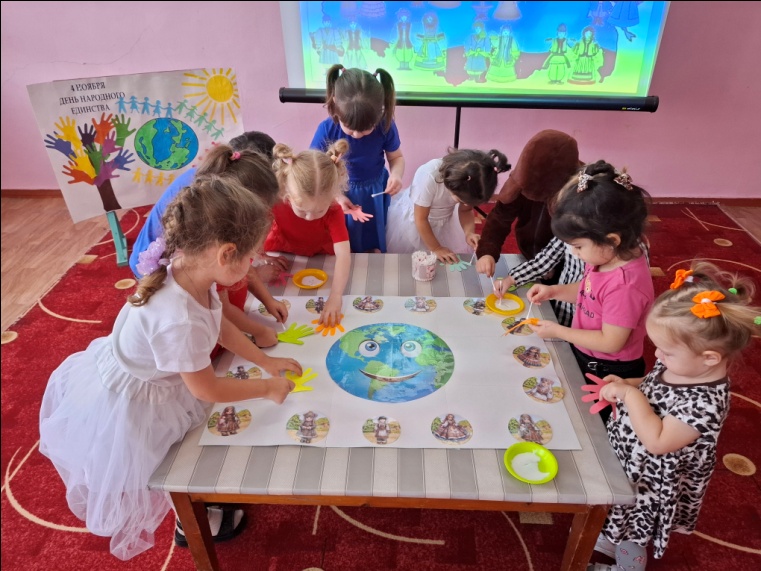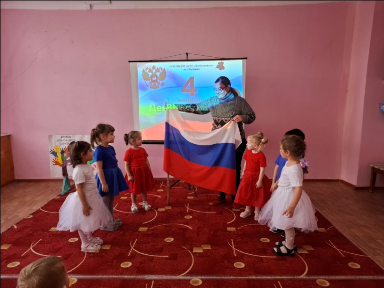В нашем детском саду прошло яркое и увлекательное мероприятие, посвящённое «Дню народного единства» в старшей разновозрастной группе «Радуга». Мероприятие началось с чтения стихов о России и её народах. Каждый ребёнок смог выразить свои чувства и мысли о значимости единства и дружбы. Изучили традиции разных народов, живущих в нашей стране. Дети узнали о праздниках, обычаях и кухне различных этнических групп. Обсудили, как разнообразие культур делает нашу страну уникальной и богатой. Провели физминутку, в ходе которой все выполняли различные физические упражнения под задорную музыку. Это помогло зарядиться энергией и поднять настроение. Затем воспитанники выполнили дидактическую игру «Собери герб», где ребята не только весело провели время, но и узнали больше о символах Российской Федерации. Участники делились своими знаниями, стараясь собрать правильные элементы герба. Также в рамках мероприятия была организована аппликация «Дружба народов». Дети с удовольствием творили, создавая яркие и красочные работы, которые отражали ценности дружбы и единства. Каждый ребёнок смог выразить своё видение на бумаге, что способствовало развитию креативности и художественных навыков. Завершилось наше мероприятие флешмобом, который объединил всех участниов в едином танце. Это было весело и динамично! Танец позволил детям не только показать свои способности, но и продемонстрировать, как важно быть вместе и поддерживать друг друга. День народногот единства стал для наших воспитанников настоящим праздником, наполненным радостью, знаниями и дружбой. Мы уверены, что такие мероприятия способствуют формированию уважения к культуре и традициям других народов, а также укрепляют дружеские отношения среди детей.