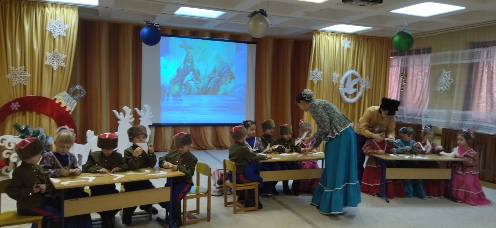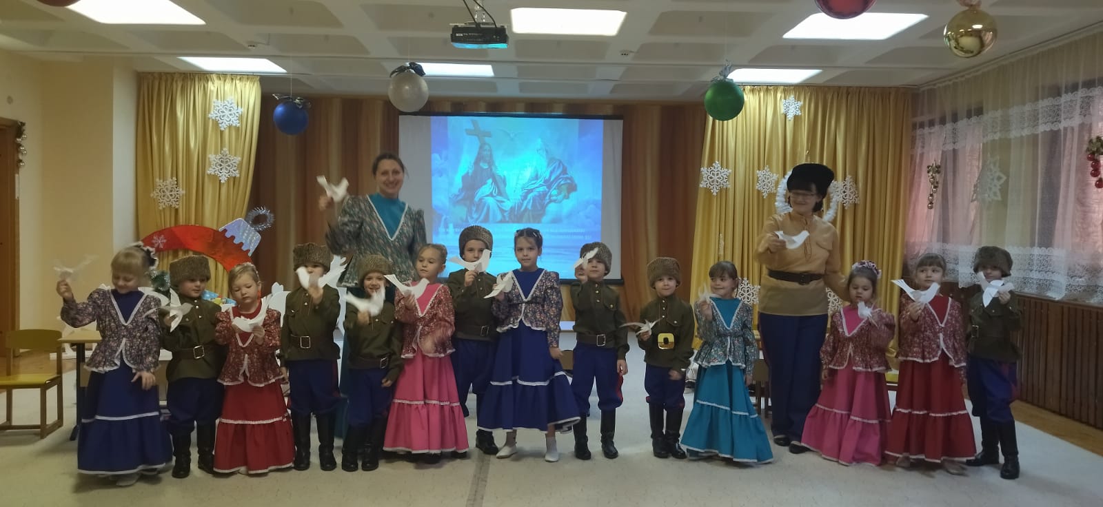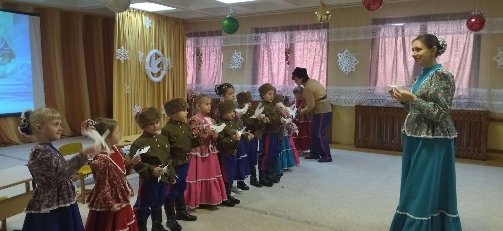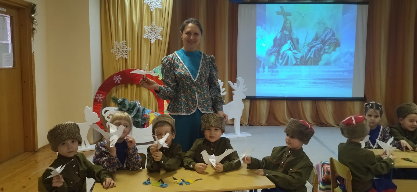 "Учитель года 2023 года"Опубликовано: 27-01-2023 01:00подготовил: старший воспитатель Константиненко О.С. 2023 год Указом Президента России Владимира Путина объявлен Годом педагога и наставника. Миссия Года – признание особого статуса педагогических работников, в том числе выполняющих наставническую деятельность. Мероприятия Года педагога и наставника направлены на повышение престижа профессии учителя и воспитателя.Так в Егорлыкском районе прошёл конкурс, определяющий самых достойных представителей профессии педагога. Наш воспитатель Коломыцева И. В. участвовала в муниципальном этапе областного конкурса "Учитель года 2023 года" в номинации "Воспитатель года" и достойно показала своё мастерство и профессионализм. ![]() ![]() ![]() Акция «Покормите птиц зимой»Опубликовано: 25-01-2023 01:00Подготовил воспитатель: Склярова Е.Л. В рамках акции «Покормите птиц зимой» в группе раннего возраста «Дельфинчики» проведена работа по экологическому воспитанию. Малышам всего лишь 2-3 года, но они синтересом слушали мои рассказы о зимующих птицах, о том, что их необходимо в зимнее время года подкармливать. Большое удовольствие ребята получили от прослушивания птичьих голосов аудиозаписи «Звуки природы». Самые активные папы изготовили кормушки и мы каждый день на прогулке подкармливаем наших маленьких «соседей» и играем в любимые подвижные игры «Воробушки и автомобиль, «Кот и птички».![]() ![]() ![]() ![]() ![]() ![]() ![]() ![]() ![]() ![]() ![]() Как мы праздновали «Крещение Господне» в «Жемчужинке»Опубликовано: 25-01-2023 01:00подготовила музыкальный руководитель Абдуллаева М.В. Праздник Крещения Господня- один из самых древних праздников христианской Церкви. И мы традиционно его празднуем 19 января.Дети старшей разновозрастной группы познакомились с происхождением праздника. Для этого им демонстрировалась мультимедийная презентация, которую озвучили музыкальный руководитель Абдуллаева М.В. и воспитатель Шиян Н.С. в образах Хозяйки и Хозяина, казаков, принимавших гостей (детей) в своей горнице. Создать у дошкольников радостное настроение, вызвать эмоциональную отзывчивость получилось по средствам народных игр и обрядов. Например, гадание в горшочке. Дети с интересом и особыми эмоциями вытягивали «судьбоносные» предметы, слушали, а иногда и сами высказывали догадки об их значении. Весело танцевали «Приглашение», увлекая всех в общую пляску и с удовольствием принимали участие в хороводных играх: «Снежная баба», «Найди себе пару», а так же в народных играх: «Ручеек» и «Лавочка». Так как Дух Святой сошел на Иисуса в виде белоснежного голубя, в христианстве именно он олицетворяет чистоту и святость. И поэтому мы предложили ребятам из бумаги сделать своего голубя, чтобы осталась память о празднике и хорошие воспоминания. ![]() ![]() ![]() ![]() ![]() ![]() ![]() ![]() ![]() ![]() ![]() ![]() ![]() ![]() День рождения снеговикаОпубликовано: 24-01-2023 01:00Воспитатель: Рудова Е.Н. Невозможно представить себе жизнь ребёнка в детском саду без весёлых досугов, развлечений, шумных соревнований и праздников. Праздник – это всегда положительные эмоции, радостное общение, весёлый смех, восторг и удивление. И в нашем, мы тоже стремимся к тому, чтобы наши дошколята как можно больше получали огромное удовольствие от жизни в детском саду.После всех новогодних праздников в младшей группе «Звёздочка» прошло развлечение, посвящённое Дню рож