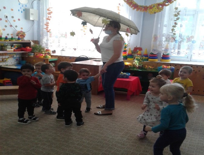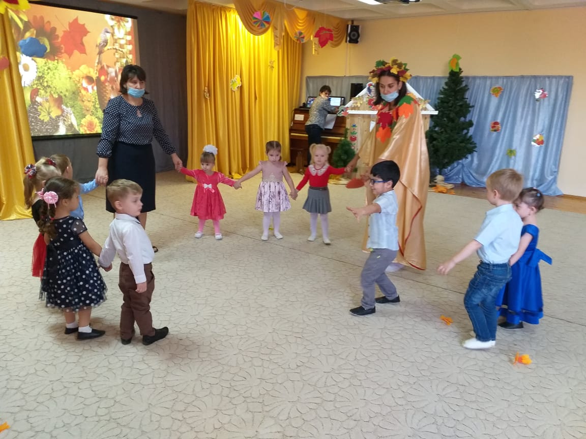 Фотоотчёт о проведении праздника осени.Опубликовано: 03-11-2020 00:11подготовил: воспитатель Свирина Н.Ю. 28 октября 2020 года в группе раннего возраста «Солнышко» прошел осенний праздник «Здравствуй, осень золотая!». У нас в музыкальном зале царила теплая, доброжелательная атмосфера. К ребятам приходила в гости Осень. Она поиграла с детьми в игру «Кто быстрее соберет грибочки», «Солнышко и дождик». На утреннике дети рассказывали стихи об осени, пели песни, танцевали танец «Веселые грибочки».Праздник в детском саду – это всегда звонкий смех детей, море улыбок и веселья. А для нас, воспитателей, это самое главное. Мероприятие получилось ярким, веселым, увлекательным.