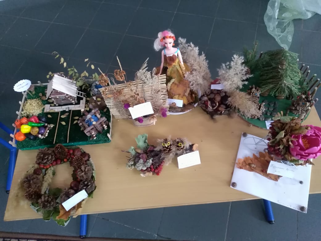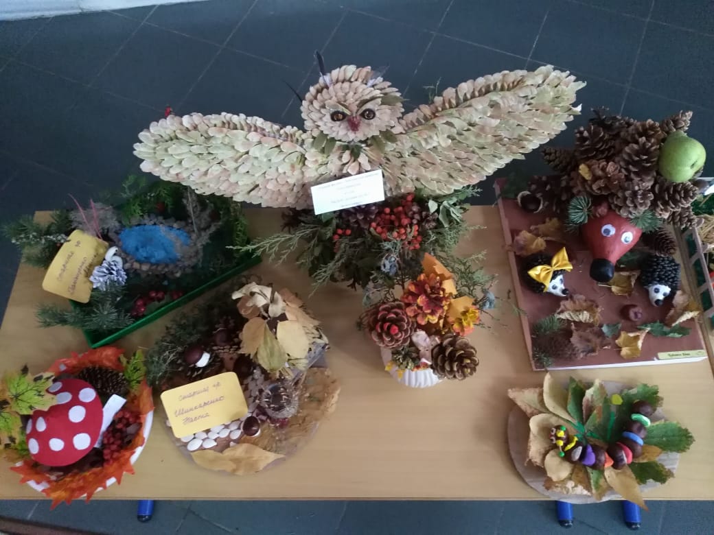 Подготовил: воспитатель Дрогачёва Л.В. В нашем детском саду уже стало традицией организация ежегодной выставки из природного материала на осеннюю тему «Волшебный сундучок осени», в котором принимали участие не только дети, но и их родители. Создавая свои поделки, дети являются уже не просто созерцателями, они превращаются в творцов, используя дары, приготовленные для них природой. Работа с природным материалом заключает в себе большие возможности сближения ребёнка с родной природой, воспитание бережного, заботливого отношения к ней. Оказалось, не так просто сделать поделку: её изготовление требует определённых трудовых и волевых усилий. Ребята вместе с родителями сначала собирали природный материал, затем вместе проектировали изготовление поделки. Такое совместное творчество семьи и ребёнка над воплощением детской идеи в реальность повышает ценность такой работы. Выставка проходила в течении двух недель. В своих работах ребята использовали разные природные материалы: шишки, листья, мох, цветы, веточки. Работы выполнялись в разных техниках: аппликация, моделирование, букеты, панно. Все участники нашего конкурса несомненно достойны похвалы. Нам было сложно выделить только одного победителя: настолько было много хороших работ. И всё же самые творческие семьи были награждены грамотами.Наши педагоги тоже прониклись творческим вдохновением и украсили холл садика в осеннем стиле, который при встрече радует детей и родителей.