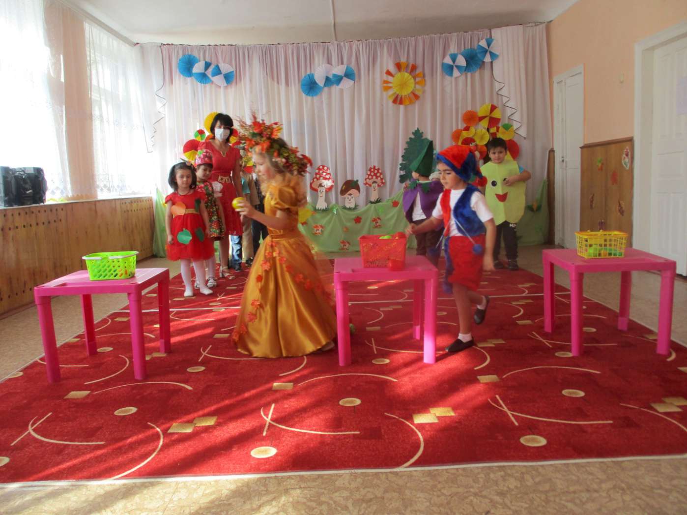 Осень каждый год приходит к нам!Опубликовано: 02-11-2020 00:11Подготовила: воспитатель Середа А.А Потому что бродит осень за окном. Заглянул осенний праздник в детский сад, Чтоб порадовать и взрослых и ребят И вот долгожданный день наступил. На праздник к ребятам приходили Золотая Осень, веселый гномик Старичок – Лесовичок, трусишка Зайка. Дети водили хоровод, пели песенки об осени, читали стихи, играли в веселые игры, участвовали в эстафетах, танцевали. А самым ярким и запоминающимся эпизодом был подарок осени – корзина с фруктами и сок для всех ребят!