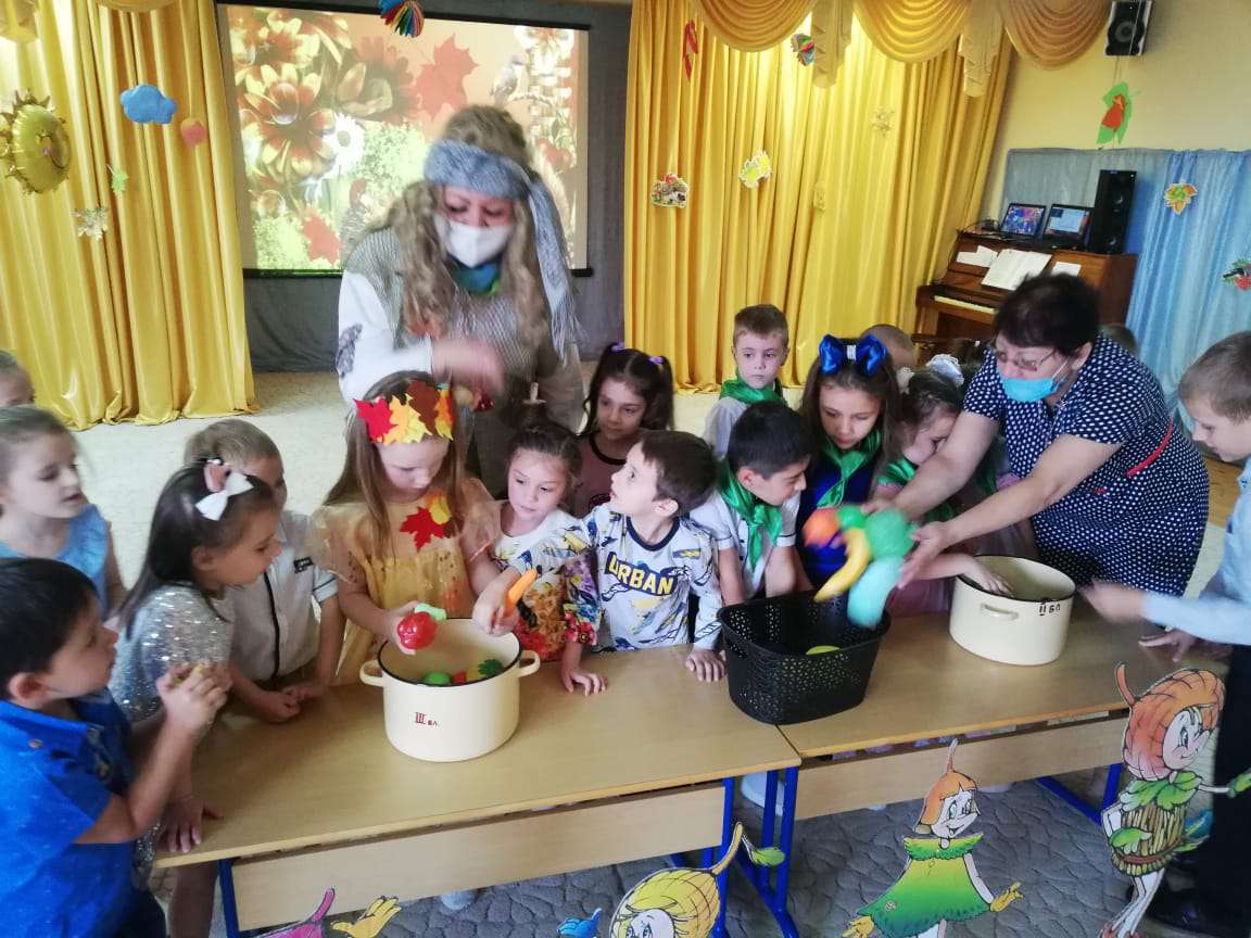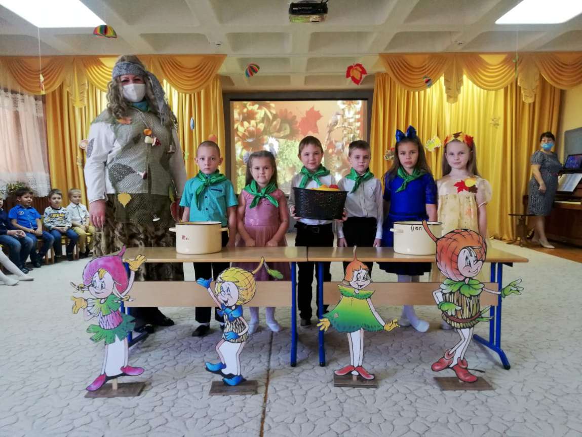 Кикимора и ОсеньОпубликовано: 02-11-2020 00:11подготовила: воспитатель Лещина Ю.И. Потому что бродит осень за окном. Заглянул осенний праздник в детский сад, Чтоб порадовать и взрослых и ребят На празднике дети пели песни, исполняли танцы, играли в веселые игры, отгадывали осенние загадки, рассказывали стихи. Ребята -«Эколята» пришли на утренник к нашим подготовишкам с овощами и фруктами, чтобы поиграть в веселую игру «Кто быстрее» .А самым ярким и запоминающимся эпизодом стал сюрпризный момент – сладкие угощения от Осени для всех ребят! Хоть и говорят, что осень унылая пора, но дети, как никто другой, способны радоваться шороху золотистых опавших листьев под ногами, дождику, под которым так интересно гулять под зонтиком, обув резиновые сапожки. Вот почему праздник Осени в детском саду является одним из самых любимых у нашей детворы. Мероприятие было веселым, ярким, увлекательным. Воспитанники получили много позитивных эмоций.