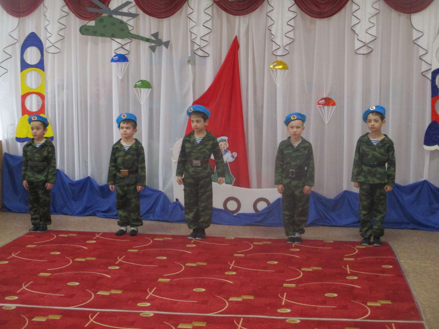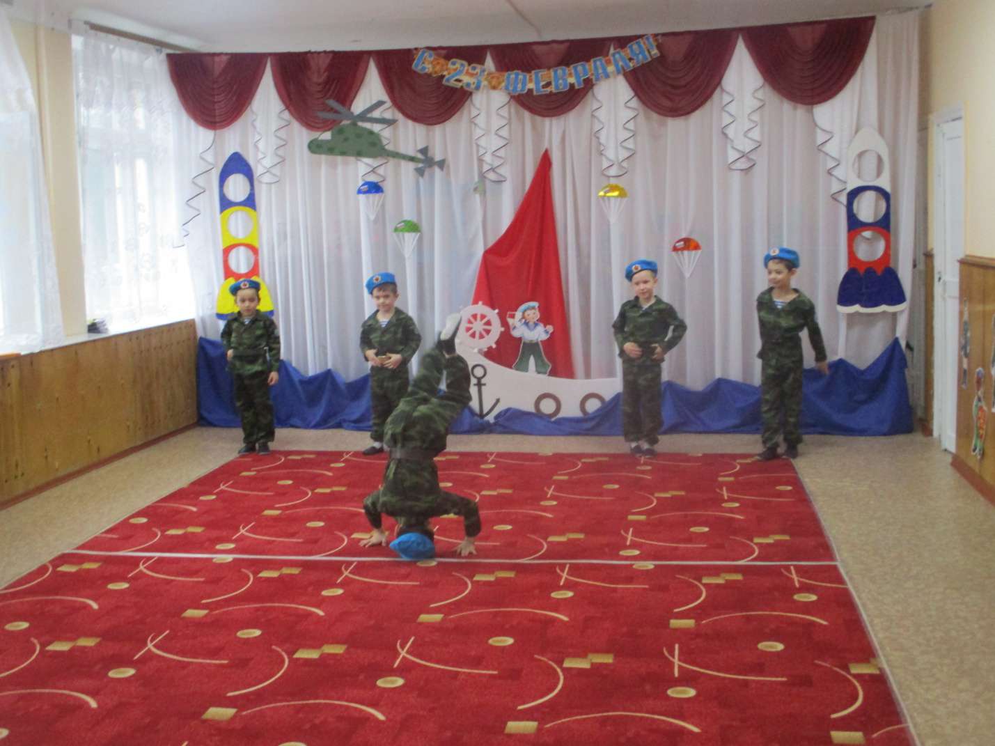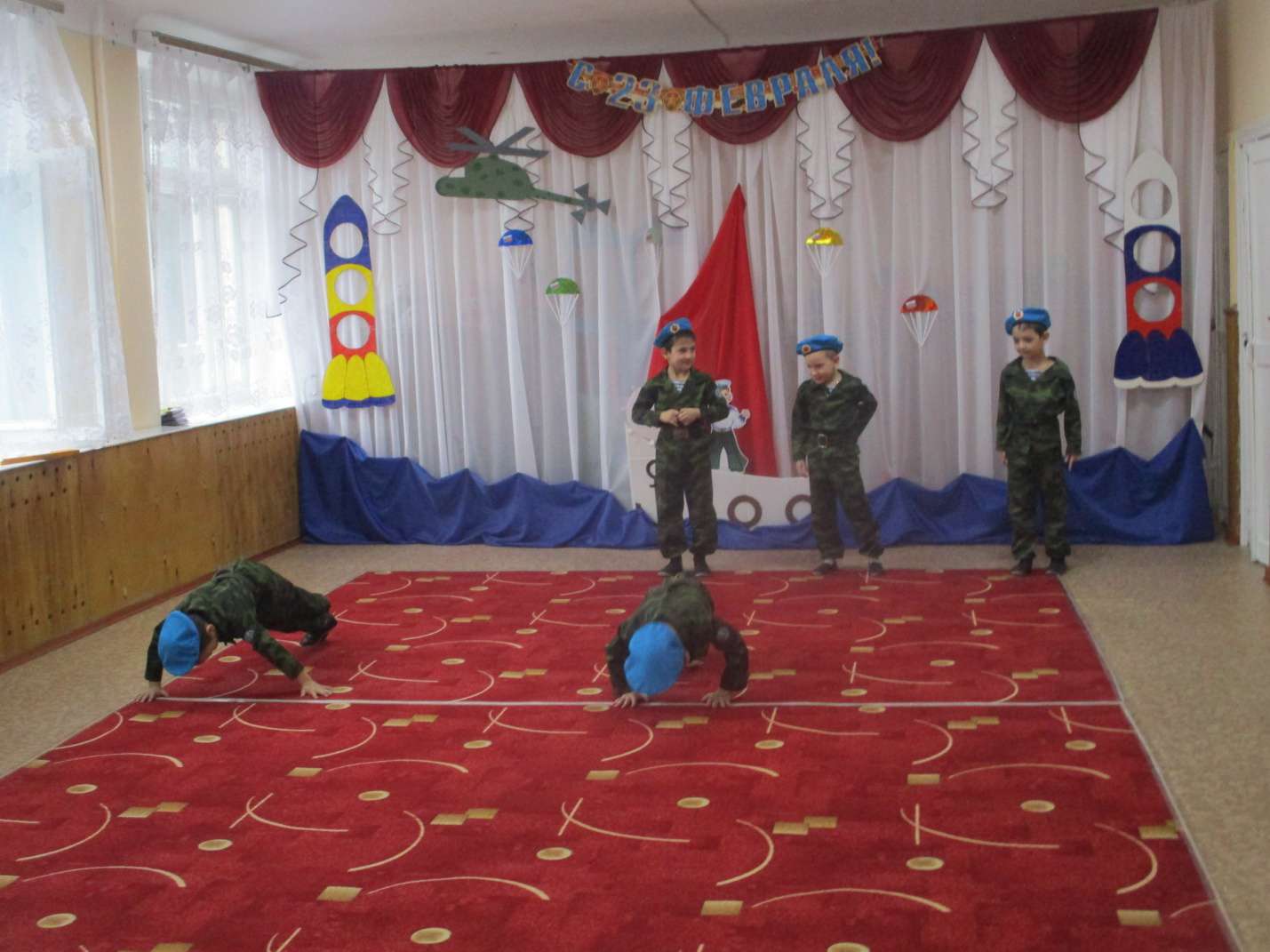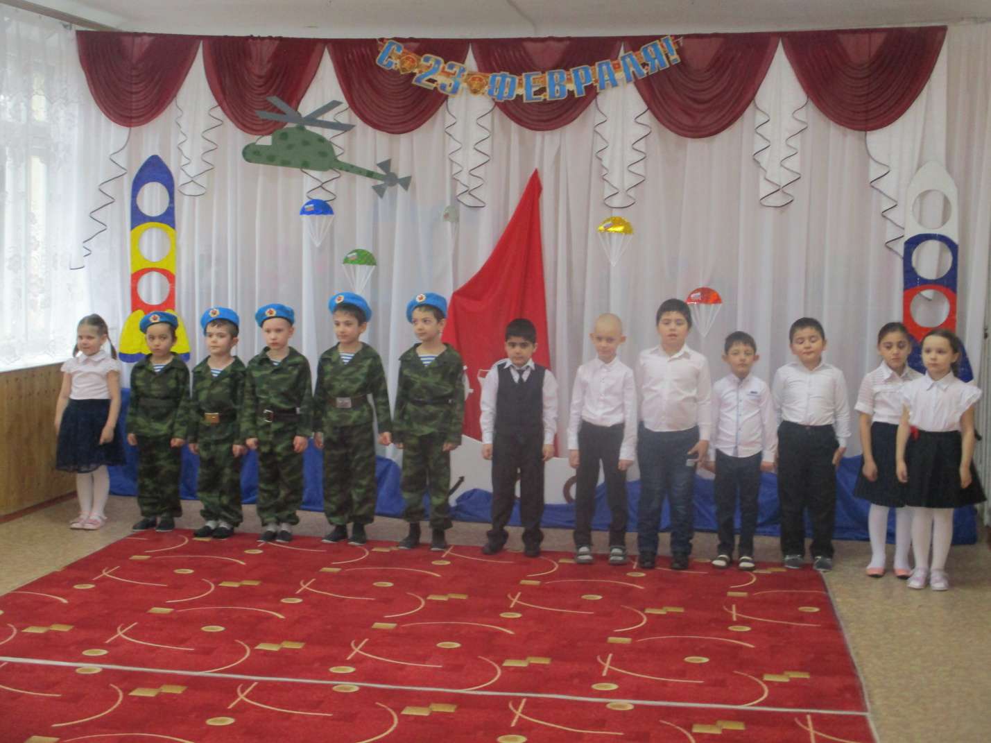 Праздник 23 февраля «День нашей армии сегодня!»Опубликовано: 27-02-2020 19:30Воспитатель Середа А.А. Праздник 23 февраля в детском саду – хороший повод для воспитания у дошкольников чувства патриотизма, сопричастности к лучшим традициям своей Родины, формирования у детей гордости за славных защитников Отечества. Это праздник всех людей, которые стоят на страже нашей Родины. Это праздник настоящих мужчин — смелых и отважных, ловких и надёжных, а также праздник мальчиков, которые вырастут и станут защитниками Отечества, а пока мы знакомим детей и рассказываем, что такое армия, почему 23 февраля — День Защитника Отечества. Воспитываем уважительное отношение к военному человеку, человеку в форме, прививаем любовь к Родине, и развиваем патриотические чувства.Сегодня мы собрались в этом зале, чтобы отметить особенный праздник — День защитника Отечества. 23 февраля вся Россия будет поздравлять мужчин — пап, братьев, дедушек с днем рождения нашей армии. Такие мероприятия, проведённые с детьми, закладывают в их душах зёрнышки патриотизма, чувства долга перед Родиной. Дети с задором исполняли песни: «Папа – мой российский офицер», «23 февраля», с выражением читали стихотворения. Праздник традиционно прошел с папами. Юмор, песни и стихи сопровождали весь праздник. Детский смех и улыбки радовали родителей и педагогов. В подарок дорогим, родным папам и дедушкам дети исполнили яркий «Танец десантников»; вручали подарки, изготовленные своими руками.