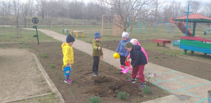 Наши добрые дела. Экологическая акция для дошкольников "Посади дерево"Опубликовано: 08-04-2019 19:30Встают сады в родном моем краю Ежегодно стартует международная акция «Посади дерево», в которой активное участие принимают родители ,а главное -дети. Сделать вклад в зеленое будущее нашей планеты мы можем уже сегодня, приучая младшее поколение любить и уважать природу. Отличный способ привлечения детей к деятельности по охране окружающей среды - это посадка деревьев. Мы решили попробовать сами посадить свои деревья, без помощи родителей. Конечно, без помощи родителей мы не обошлись. Мама нашей воспитанницы- Юлия Юрьевна, накануне, привезла нам саженцы из своего сада. За это ей большое спасибо! Посадка дерева - не только полезное, но и увлекательное занятие. Пройдет время, дети вырастут, а вместе с ними и саженцы превратятся в красивые деревья. Зато, какой результат! Вывод: Если вы с самого рождения попытаетесь привить малышу интерес к посадке деревьев и уходу за ними, это увлечение поможет ему сформировать положительные черты характера, а так же привить любовь к природе и экологии.