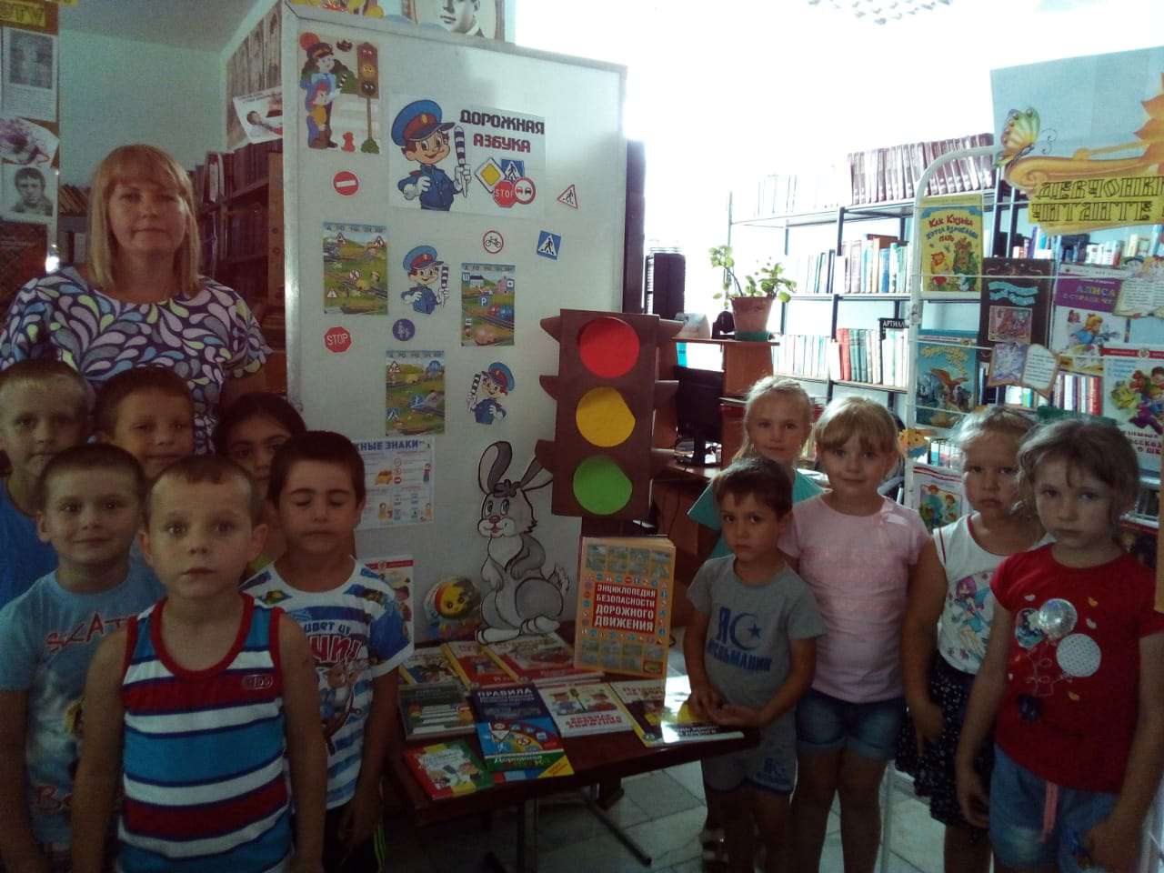 День светофора – это еще одна возможность напомнить юным пешеходам о важности соблюдения правил дорожного движения. Так наши ребята подготовительной группы «Морские звёздочки» побывали в гостях у Людмилы Владимировны Куричевой, детского библиотекаря, и вместе дружно отметили этот замечательный праздник, а самое главное вспомнили правила дорожного движения. На мероприятии дошколята не только послушали об истории появления светофора, о его предшественнике — регулировочном жезле, узнали о том, как эти устройства выглядели раньше, какие изменения претерпели, но и показали свои отличные знания правил дорожного движения, дав правильные ответы на все вопросы. Ребята разгадывали загадки о дорожных знаках; играли в игры «Сигнал светофора», «Это я , это я, это все мои друзья»; познакомились с произведениями С.Михалкова «Моя улица», «Скверная история»; Б. Житкова «Светофор». Далее детям было предложено нарисовать светофор, что с удовольствием было сделано.
