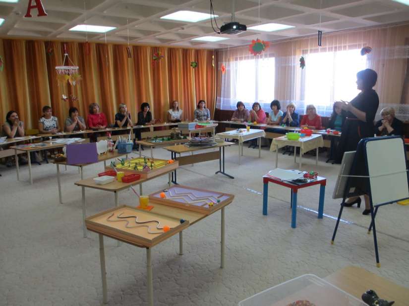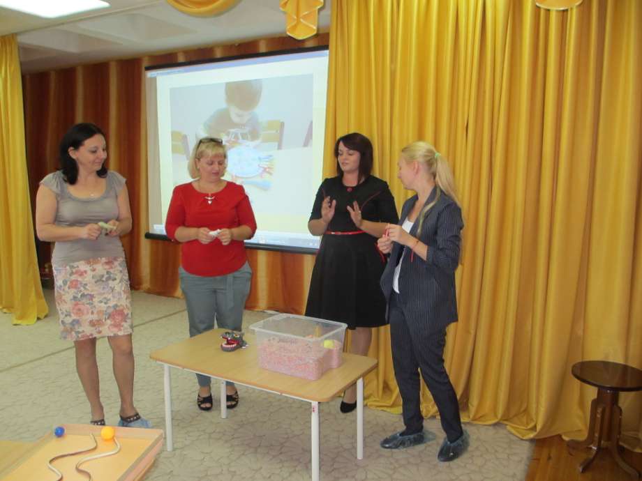 Работа воспитателя по развитию звуковой культуры речи играет большую роль в речевом развитии ребёнка. Поэтому для оказания помощи педагогам в планировании и организации работы по развитию звуковой культуры речи у дошкольников 18 сентября 2018г. на базе нашего детского сада №7 «Жемчужинка» состоялся семинар-практикум по теме: «Современные подходы к организации речевого развития дошкольников». Я учитель-логопед МБДОУ детского сада №7 «Жемчужинка» Бурдейная Екатерина Викторовна организовала с руководителями детских садов района «Мастер класс по постановке и автоматизации звука [ш]», в ходе которого предложила присутствующим вместе со мной выполнить артикуляционную гимнастику, упражнения по развитию речевого дыхания, массаж рук с помощью Су-джок, упражнения направленные на развитие мелкой моторики и графомоторики, а так же продемонстрировала работу по постановке звука и его автоматизации, используя игровые упражнения, различные задания, пособия, дидактические игры и ИКТ – интерактивную игру «День рождения буквы Ш». Мною были представлены авторские пособия, то есть придуманные и изготовленные мною игры на основе современных детских интересов. Это логопедические игры со спинером, с липучками, с мультгероями и т.д. О проблеме нарушения речи у дошкольников рассказала воспитатель Константиненко Ольга Сергеевна. Воспитатель продемонстрировала изготовление своими руками многофункционального пособия «Кольца Луллия», предложенного авторами ТРИЗ для развития фонематического слуха, а также используемые формы и средства: волшебный кубик, спинер; презентации, мультфильмы, обучающие фильмы, интерактивные игры, сказки с артикуляционной гимнастикой. Также воспитатель представила составленную ею картотеку игр на развитие артикуляционного аппарата, речевого дыхания и фонематического слуха. На мой взгляд Ольге Сергеевне удалось показать, что необязательно быть логопедом, для того чтобы помочь детям научиться правильно произносить звуки. Мы с ней уверены в том, что правильно и качественно проделанная артикуляционная гимнастика избавит ребенка от проблем со звукопроизношением. В заключение семинара-практикума я раздала заведующим ДОУ буклеты «Звуки и буквы». А воспитатель Константиненко О.С. вручила от нашего гостеприимного сада всем гостям имбирные пряники, которые уже стали нашей традицией. Руководитель методического объединения Замошникова И.В. предложила электронную методическую копилку, в которой систематизирован материал по развитию ЗКР у дошкольников.