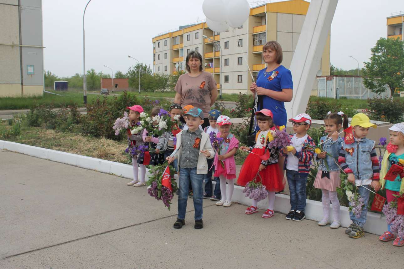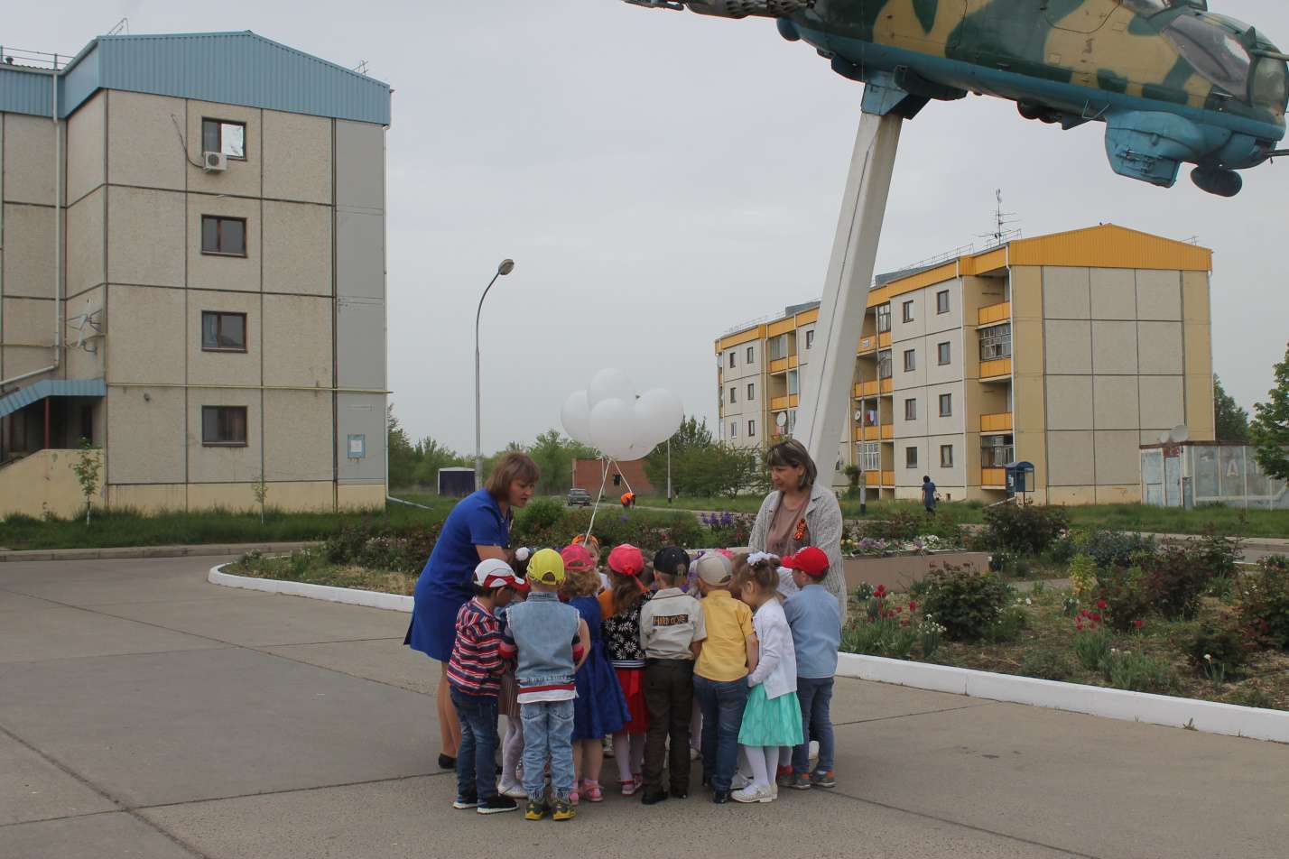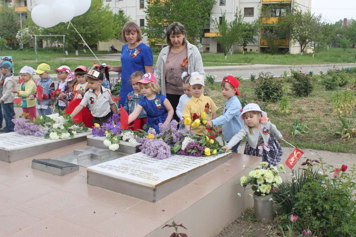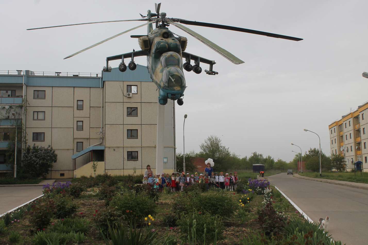 В праздничные дни к памятникам Великой Отечественной войны возлагаются цветы. Так воспитанники детского сада № 7 в преддверии праздника совершили патриотическую экскурсию к памятнику Героям – вертолётчикам под руководством воспитателей Бех Т.Ю., КостенкоЛ.Г., младшего воспитателя Пацуковой А.Н., родителя Бахолдиной С.В. Ребята надели георгиевские ленты, взяли в руки цветы и флажки. Торжественная церемония возложения цветов сопровождалась минутой молчания в память всех погибших. Минута молчания – знак почтения всем людям, отдавшим свои жизни за то, чтобы сегодня у нас над головой было мирное небо. Дошкольники возложили цветы, прочитали стихи о Великой Победе, посвященные героям военных действий, которые эхом уходили в безмолвное хмурое небо. Затем, взявшись за руки, дети выпустили в небо белые воздушные шары, как символ памяти и скорби. Воспитатель: Бех Т.Ю.