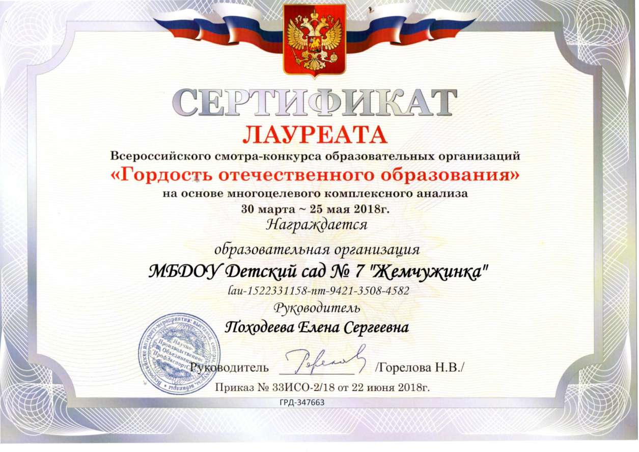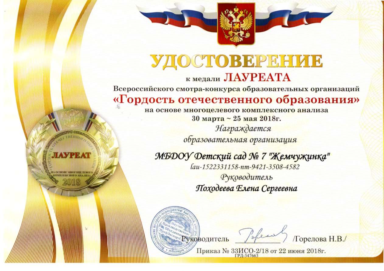 "Жемчужинка" - Гордость отечественного образования"Опубликовано: 14-08-2018 18:00![]() Наше дошкольное образовательное учреждение приняла активное участие во Всероссийском смотре-конкурсе "Гордость отечественного образования" образовательных организаций на основе многоцелевого комплексного анализа с 30 марта по 25 мая 2018 г. Смотр-конкурс проводился с целью: