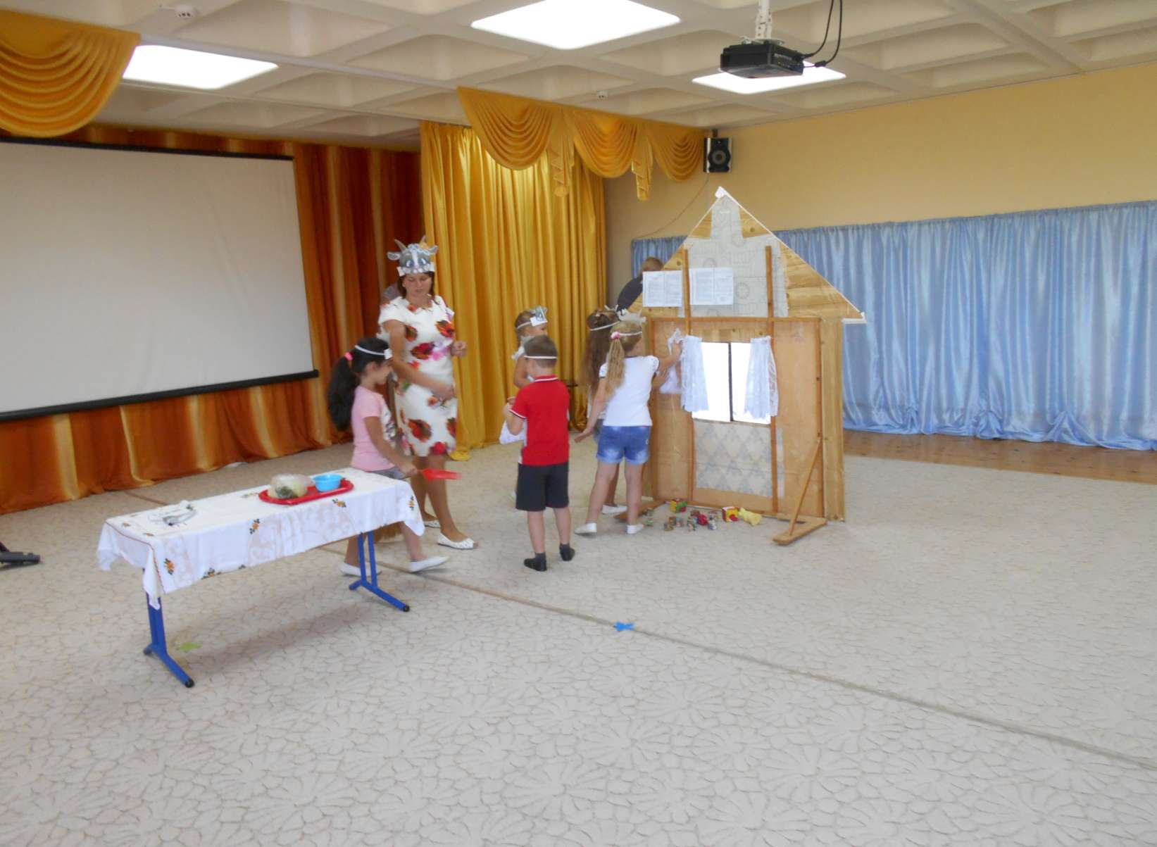 10 августа 2018 года для дошколят воспитатель Тепляшина Т.П. подготовила интерактивное представление «Один дома», по мотивам русской народной сказки «Волк и семеро козлят» В сказке были заняты дети подготовительной группы, взрослых героев играли воспитатели и учитель-логопед.