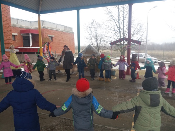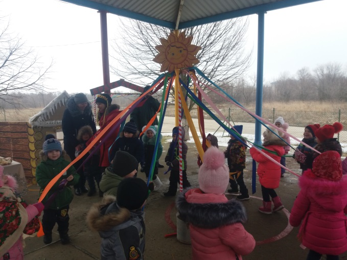 Наша страна богата своими традициями,народными праздниками,обычаями. Одним из таких праздников является "Широкая масленица". -Масленица один из самых светлых и веселых праздников на Руси. Наши дети хорошо должны знать традиции национальной культуры, осознавать, понимать и активно участвовать в ней. Мы с детьми готовились к этому празднику, дети его ждали с нетерпением. Воспитатели рассказывали детям как раньше на Руси праздновали Масленицу, что означает и откуда берет начало этот обычай. Музыкальный руководитель Дейнекина М.Г. с детьми заучивали заклички, разучивали песни, хороводы. Инструктор по физическому развитию Нестеренко М.И. подготовила забавы, в которых каждый мог поучаствовать. Для детей старшего и среднего дошкольного возраста устроили традиционное уличное гулянье с песнями и плясками,с конкурсами,народными играми и забавами. И провели его по-особенному весело! Игры, хороводы, весёлые конкурсы не давали скучать никому! Масленица-это озорное и весёлое прощание с зимой и встреча весны, несущей оживление природе и солнечное тепло. Русскую зиму дружно проводили, здорово и весело! Праздник удался на славу!