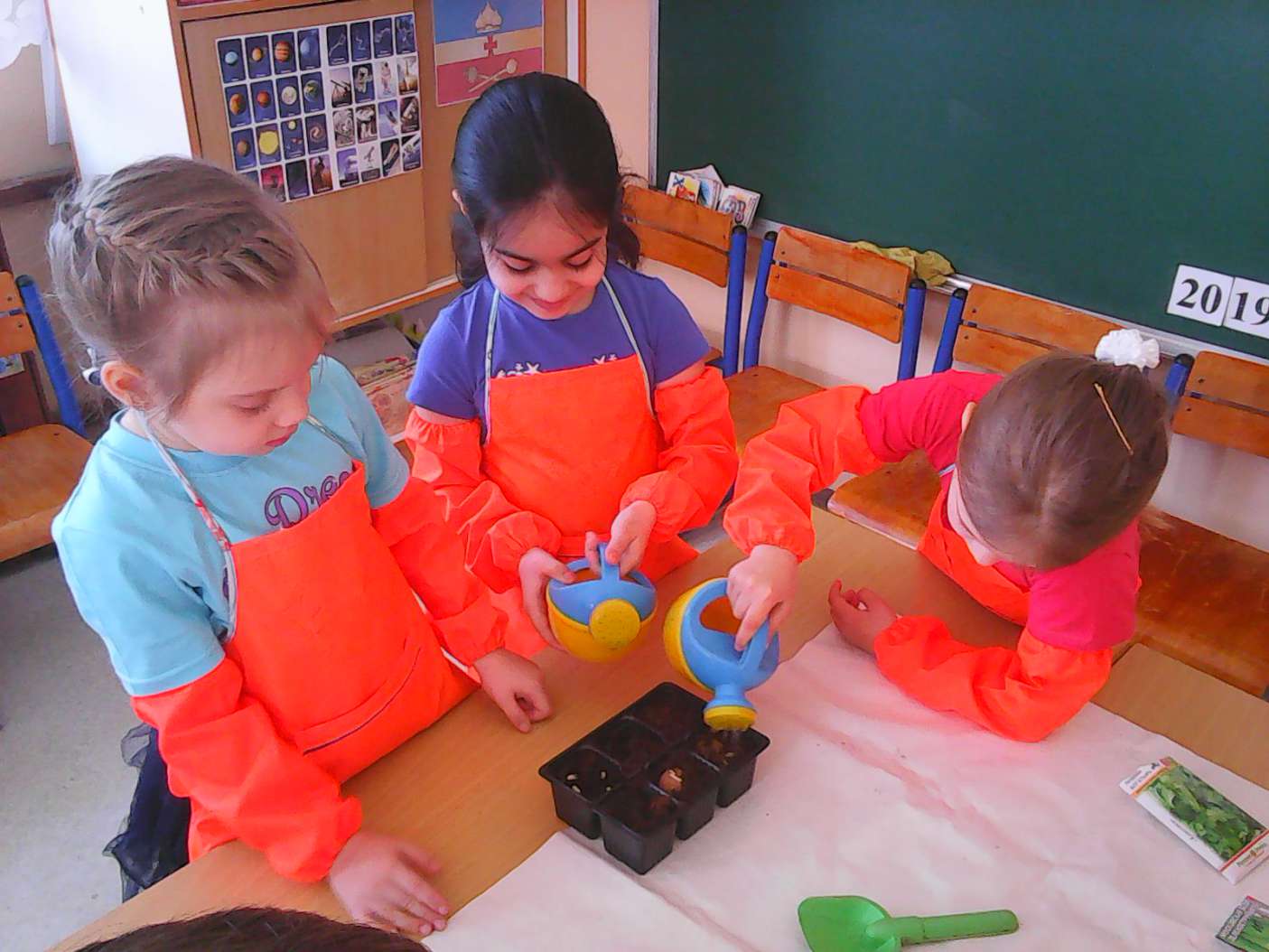 Огород взошел дружно, мы уже третью неделю с Крошем, Нюшей, Копатычем наблюдаем за всходами и экспериментируем. Наш замечательный огород в стране Смешариков порадовал детские души своим теплом и создал солнечное весеннее настроение. Подготовила воспитатель: Константиненко О.С. Огород на окне в средней группе "Казачий дворик»Опубликовано: 07-03-2018 00:20Где тут необычный огород? Говорят, что там растет И цветочная рассада, И салатик, и лучок. Смотрят все на огород, И уходят, открыв рот. Мы любим всё красивое, ведь «Красота – спасёт мир», мы любим всё яркое, мы любим цветы, мы любим природу. Влияние окружающего мира на развитие ребёнка огромно. Знакомство с бесконечными, постоянно изменяющимися явлениями начинается с первых лет жизни ребенка. Явления и объекты природы привлекают детей красотой, яркостью красок, разнообразием. Наблюдая за ними, ребёнок обогащает свой чувственный опыт, на котором и основывается его дальнейшее творчество. Каждый год, мы с детьми организовываем на своих подоконниках «Огороды на окне». Целью создания огорода является знакомство детей с выращиванием овощей, с посевом и выращиванием рассады цветов, для высадки на клумбы, повышением интереса детей к изучению природных объектов, воспитание трудовых навыков. Весна – время экспериментирования с ветками деревьев, рассадой, а также - выявление опыта и создание условий для работы по экспериментально-трудовой деятельности детей. Воспитание бережного и заботливого отношения к природе возможно тогда, когда дети будут располагать хотя бы элементарными знаниями о ней, овладеют несложными способами выращивания растений, научатся наблюдать природу, видеть ее красоту. На этой основе и формируется любовь детей к природе, родному краю, Родине. Наиболее подробно надо учить детей наблюдать, устанавливать связи и причины тех или иных явлений, обобщать и систематизировать знания. В процессе ознакомления детей с природой используются разнообразные методы: наглядные, практические, словесные. В конце зимы, в феврале, в уголках природы устраивают огород на окне, сажают: корнеплоды (морковь, свеклу, редьку), луковицы, сеют семена укропа, гороха, фасоли, огурцов, помидоров. Подготовку земли для посевов и посадок (увлажнение, размельчение, иногда добавление песка) проводили накануне работы. В средней группе эту работу выполнял воспитатель, ребята с удовольствием наблюдали. Перед посадкой нужно отобрать и проверить посадочный материал. Луковицы нужны среднего размера, ровные. Накануне их кладут в кастрюлю и заливают теплой водой; после остывания ее сливают, тепловая обработка ускоряет рост лука. У луковиц срезают верхушку ( примерно 1/5 часть; в этом случае лук растет ровнее и не цветет, кроме того детям лучше видно, как сажать такие луковицы – срезанной частью вверх). Для того, чтобы проверить семена растений, их кладут в стакан с водой: полновесные тонут, легковесные всплывают и отбраковываются. Дети наблюдают за развитием растений, запоминают их названия и признаки внешнего вида, отмечают характерные признаки для тех или иных растений, приобретают навык полива и ухода. Вся работа проводится в игровой форме на занятиях или в индивидуальной работе с подгруппами детей по 3-4 человека. Основная задача нас, взрослых, поддержать и развить в ребёнке интерес к исследованиям, открытиям, 
