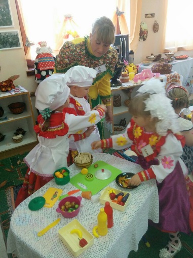 Гости в ЖемчужинкеОпубликовано: 25-04-2018 17:00Подготовила: Константиненко О.С. 24 апреля 2018 года в стенах нашего детского сада №7 «Жемчужинка» состоялось заседание методического объединения воспитателей старших дошкольных групп по теме: «Игра-как средство образовательной деятельности в условиях реализации ФГОС ДО» Педагоги делились опытом работы по организации сюжетно-ролевой игры в условиях современного образования. Двери учреждения гостеприимно открыли маленькие казак и казачка, ребята средней группы «Алые паруса». Холл и музыкальный зал были украшены в казачьем стиле. Двор детского сада так же преобразился в этом направлении. Всё потому, что МБДОУ №7 был присвоен статус «казачий» и работа наших педагогов ведётся с внедрением новой программы «Родники Дона». Выбирая сюжетно- ролевую игру для презентации, мы остановились на казачьем кафе и назвали его «Атаман». И уже начиная с названия и проходя всю сюжетную линию игры мы работали с целью- привить детям патриотические чувства, познакомить с бытом, жизнью и культурой Донского казачества. Открывая кафе у себя в старшей группе «Морские звёздочки», дети узнали о кулинарных профессиях: повара, официанта, бармена, познакомились с профессией администратора, спецификой его труда, с процессом приготовления различных казачьих блюд, научились украшать готовые блюда и подавать их к столу, так же рекламировать фирменные блюда от шеф- повара. Распределяя роли, ребята разделились на работников кафе и семью, которая спешила к открытию заведения. Пока сотрудники готовились к своему первому рабочему дню, мама, папа и дочка посетили сбербанк, салон красоты, вызвали такси. Дети проигрывали всё самостоятельно, так как были знакомы с этими ролевыми играми. И вот наступил долгожданный час- открытие кафе «Атаман». Администратор (воспитатель) и все сотрудники с караваем встречают гостей, приветствуя их по-казачьи, приглашают к столу. Официант предлагает меню и рекламирует фирменные казачьи блюда, бармен угощает напитками. В то время, когда повара готовят заказ, посетителей развлекает ансамбль «Казачата» (ребята подготовительной группы) песнями и казачьими играми. В конце игры гости кафе расплачиваются наличным и безналичным расчётом, оставляют лайки в книге отзывов и предложений и делятся своими впечатлениями. Администратор благодарит всех и просит раздать друзьям и знакомым рекламные буклеты о своём заведении. Мои «морские звёздочки» были просто в восторге, им очень понравилось быть и сотрудниками кафе, и его посетителями, самостоятельно обыгрывать знакомые игры и узнавать новые. Я думаю, что мне, как воспитателю, удалось поддержать комфортное пребывание детей в группе и сформировать умение играть в сюжетно-ролевые игры.