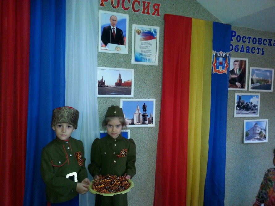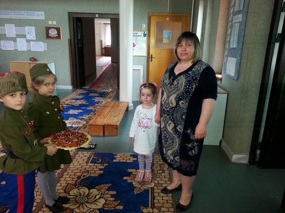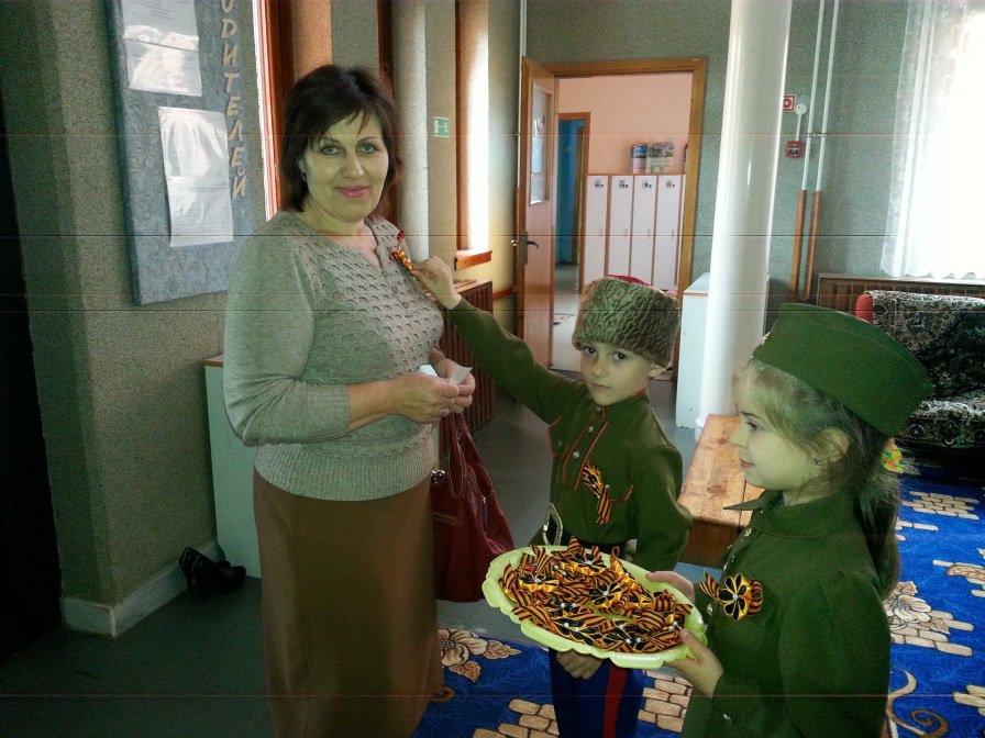 Педагоги и воспитанники старшей разновозрастной группы (воспитатель Тепляшина Т.П.) организовали акцию «Лента в День Победы», где каждому, приходящему в детский сад была вручена георгиевская лента. А родители воспитанников в свою очередь организовали выставку «От героей былых времен, где присутствовали дорогие сердцу каждого деда и прадеда. Подготовила: старший воспитатель Чакветадзе О.Н.