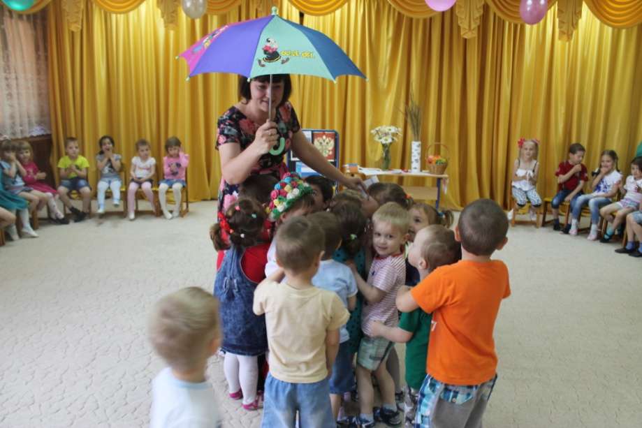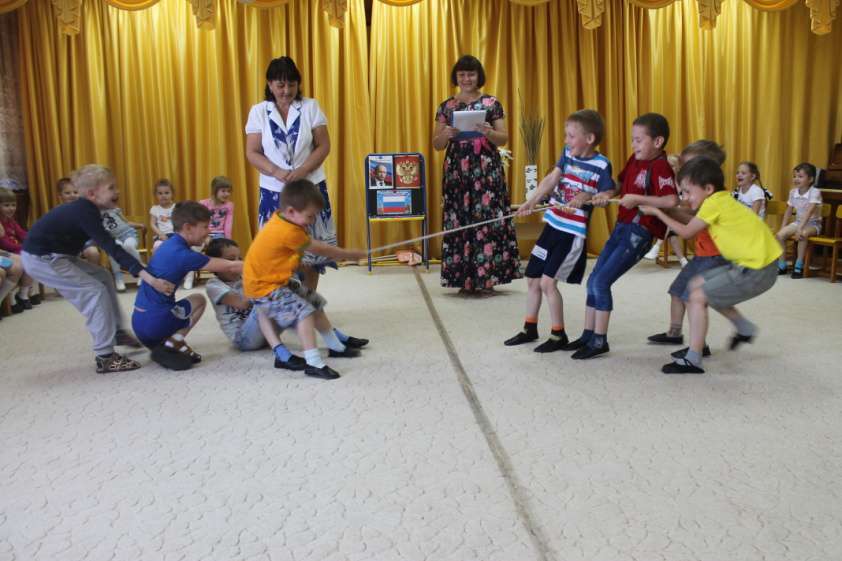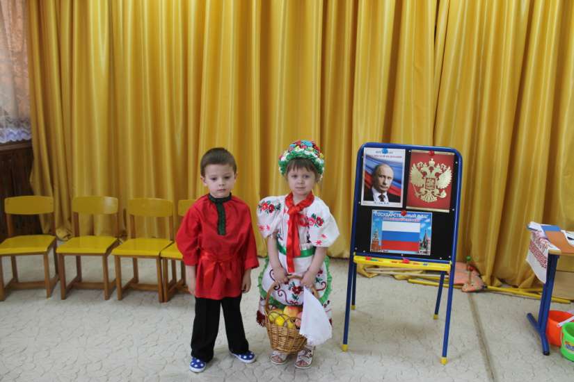 Праздничное мероприятие открыла воспитатель Т.Ю. Бех. Она объяснила детям, что День независимости - это день рождения нашей страны, в которой мы живём. С чувством гордости ребята старшей и средней группы рассказывала стихотворения о России, о нашей станице Егорлыкской, ведь и она - уголок России. Ребята послушали стихотворение Богдановой Ольги «Разлилась река голубая» в исполнении воспитателя Бех Т.Ю. Это стихотворение формирует у детей патриотические чувства, любовь к своей стране. Во время мероприятия ребята поиграли в игры «Собери Флаг», «Собери герб», «Богатыри», «Коромысло», «Подними флаг», познакомились с символами государства. Ребята младшей группы в русских национальных костюмах поздравили ребят и рассказали об обычаях казаков. Закончилось наше праздничное мероприятие песней – хороводом «Пусть всегда будет солнце…». Дети остались в восторге от того, как прошел праздник. Мы уверены, что только любовь к близким людям, к детскому саду, к родному городу и великой стране сможет провести наших маленьких патриотов по жизненному пути! И будут люди все дружить! Россия – русская душа, Эх, до чего ж ты хороша! С праздником, Россия!
