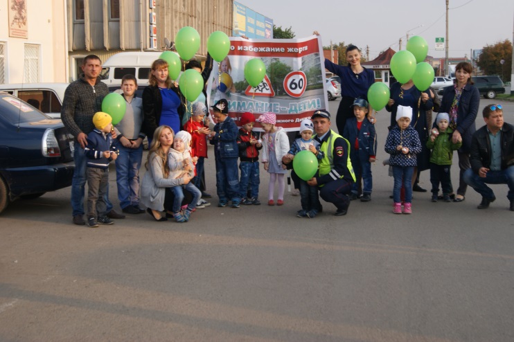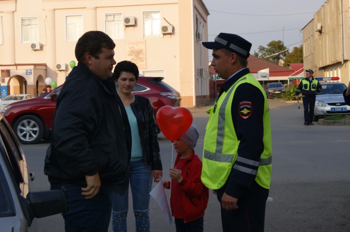 Родители совместно с инспектором ГИБДД раздавали водителям и прохожим шары-сердца и листовки о призыве соблюдать правила дорожного движения!