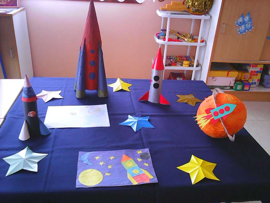 Ко дню космонавтикиОпубликовано: 13-04-2016 13:19Люди давно мечтали освоить космическое пространство. Они долго думали над тем, чтобы построить космический корабль, и узнать небо. И вот, в 1961 году Ю.А.Гагарин первым побывал в Космосе. В безжизненном, холодном, всегда черном пространстве космоса впервые забилось живое сердце человека. В средней группе "Капельки" (воспитатель Башмакова Т.И.) в период тематической недели было проведено занятие на тему "Полет в космос" , на котором дети познакомились с загадочным миром космоса, поиграли в интересные и развивающие игры "Раз - планета", "Построй ракету" и побывали в сказке "Солнышко и шарик". Совместно с родителями была организована тематическая выставка "Капельки в космосе".