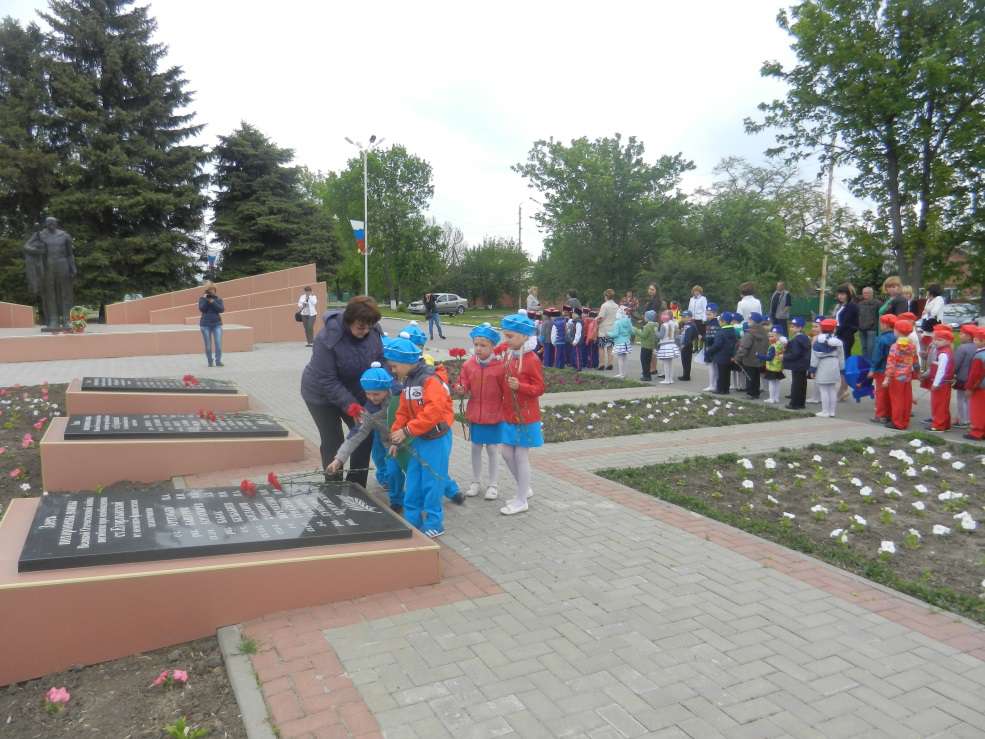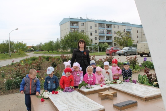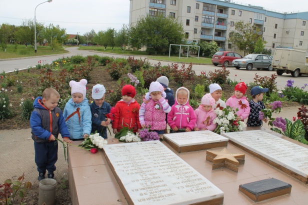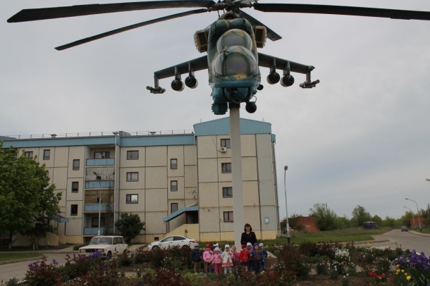 4 Мая вторая младшая группа «Алые паруса» с воспитателем Бех Т.Ю. и младшим воспитателем Пацуковой А.Н. организовали целевую экскурсию с детьми и возложение цветов к памятнику Героям - вертолётчикам, участвовавших и погибших в событиях, происходивших в конце существования Советского Союза. Сначала Афганистан, потом Абхазия, следом - Чечня. В этих горячих точках принимал участие 325-й отдельный транспортно-боевой вертолётный полк, базировавшийся на аэродроме близ Егорлыкской. На этих войнах, к сожалению, не обошлось без жертв и среди личного состава полка. В память о погибших боевых товарищах был сооружен монумент в виде летящего вертолета Ми-24. Имена шестидесяти трех Героев высечены на плитах в нижней части памятника. Недалеко, на одном из жилых домов, установлена мемориальная доска в память о проживании здесь Героя Советского Союза, Героя Российской Федерации командира полка Майданова Николая Сайновича.
